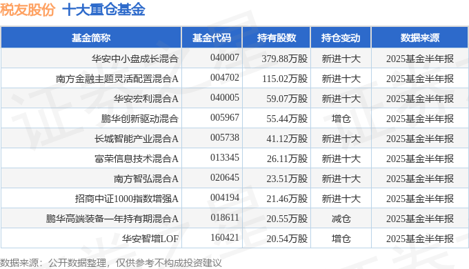 捏有税友股份最多的基金为华安中小盘成长羼杂,现在限度为18.5亿元,最新净值3.1115(8月20日),较上一往过去着落0.6%,近一年高潮39.79%。该基金现任基金司理为金拓。
