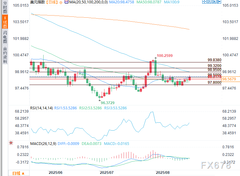 汇通财经APP讯——周四(8月21日),好意思元指数(DXY)继续涨势,盘中高潮0.46%至98.673,连合第二个交游日收于50日通俗出动平均线(98.100)上方。这一走势印证了近期好意思元指数的技巧面强势,且使该指数距离99.177-99.320的要害阻力区间仅一步之遥。当今,交游员正暖和好意思联储主席鲍威尔周五在杰克逊霍尔会议上的言语,以期获得对于好意思联储下一步利率步履的信号。